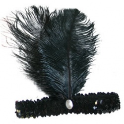 Krásná černá čelenka s flitry a černými péry vhodná na prohibice párty a večírky ve stylu 30. let.